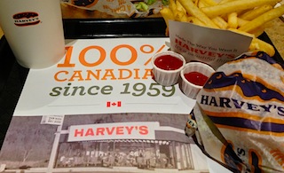 On a stopover through the Vancouver International Airport, we craved for Harvey’s – a Canadian burger chain recognized for its flame-grilled burgers and choose your own toppings. After getting in our Canadian eats, I have to say the burgers in America win my overall vote for hamburger yumminess. Don’t get me wrong though, the Canadian burgers are still good.