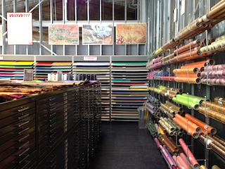 Just when I finished browsing the catalogues and displays of paper, their staff informed me of a basement, even larger than the Paper Room, where fine papers from previous seasons are stored. (What there’s more?!) The basement only opens during their annual Paper Palooza Sale, which sounds dangerously fun.