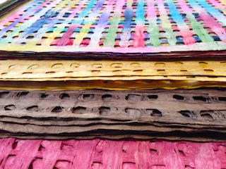 •   papers made from fibres of yarn, wool, bamboo, rice, fabric, cotton, cork, papyrus, Araca tree trunk, Batik, rayon, hemp to Mulberry